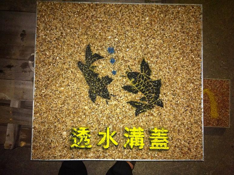 5 with the art of functional indicators, all filled with fine stone permeable pressure grille design units to follow the appearance of design LOGO design, art design with various materials (metal, the original stone, ceramic, resin) filled with fine aggregate performance of flooding in the whole resistance pressure grid plate appearance.